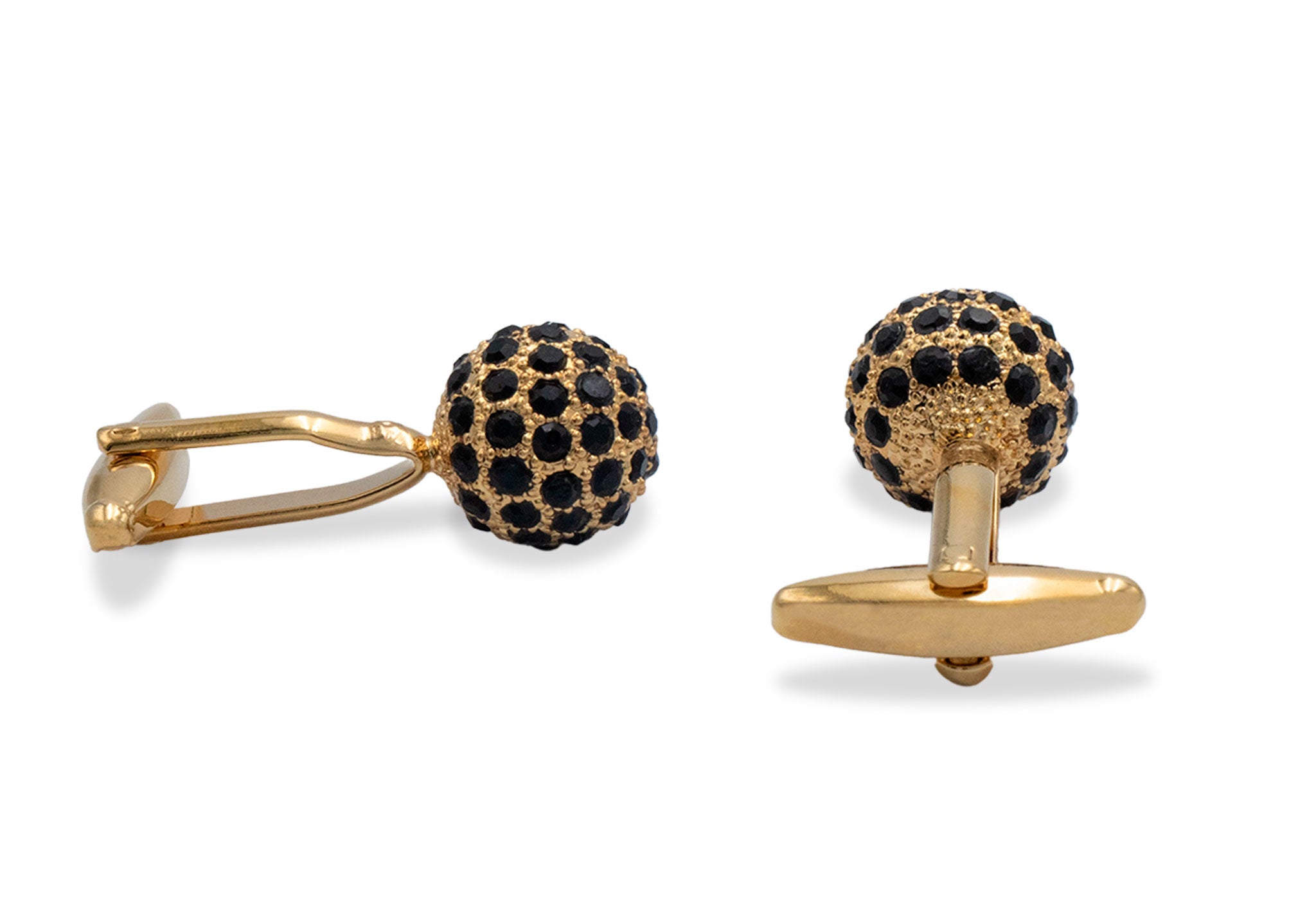 These Sinamaica cufflinks add a touch of sophistication with their intricate globe design featuring black diamontes. Perfect for any special occasion, they'll make a timeless statement.