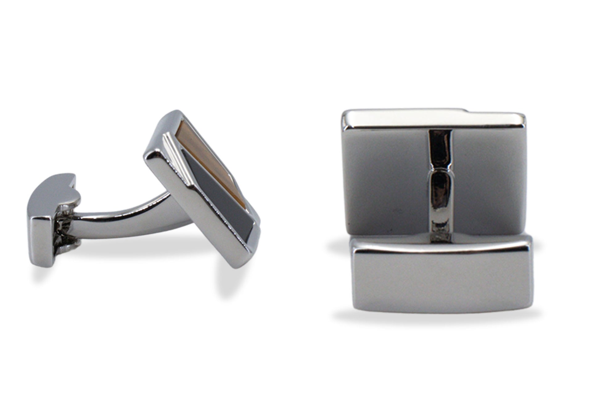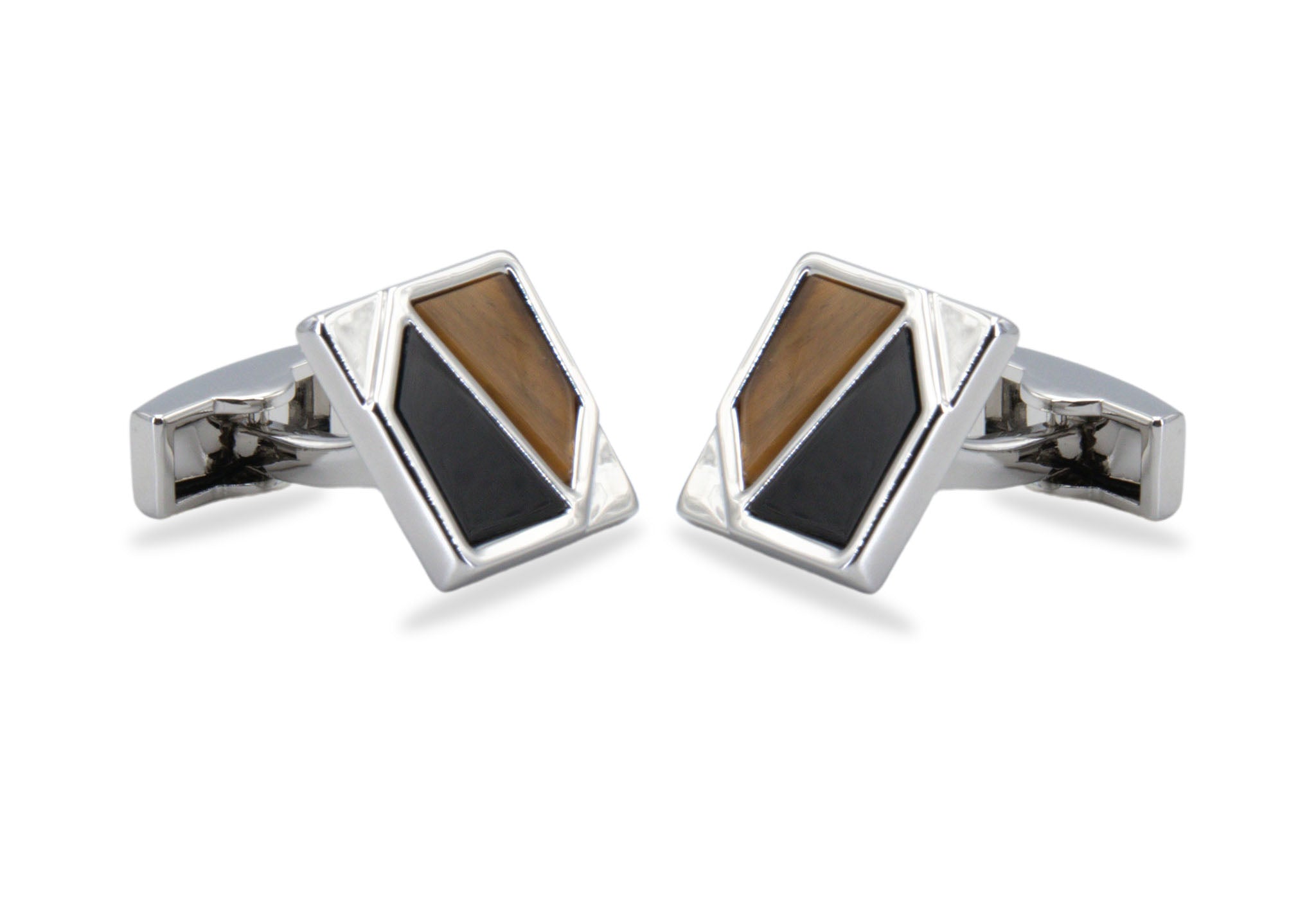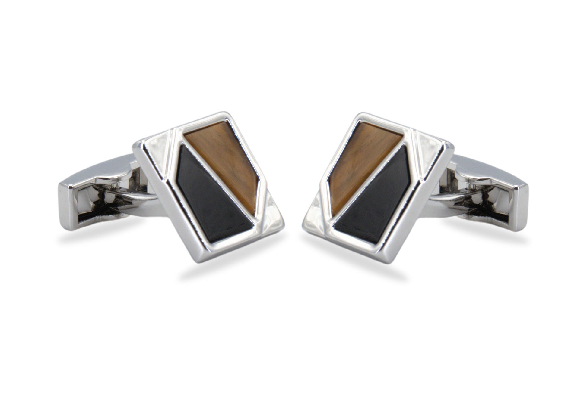 Add a touch of artful refinement to your evening attire with cufflinks in alternating black-brown inlays.