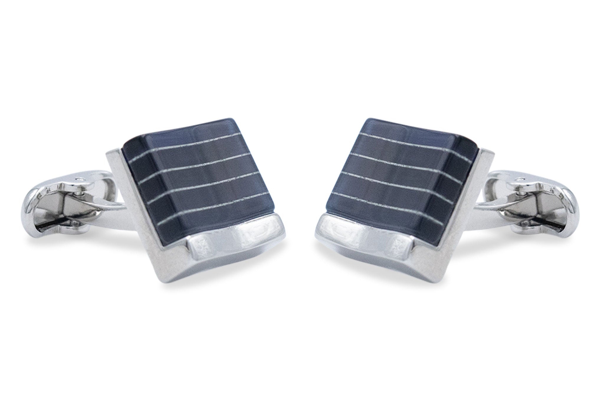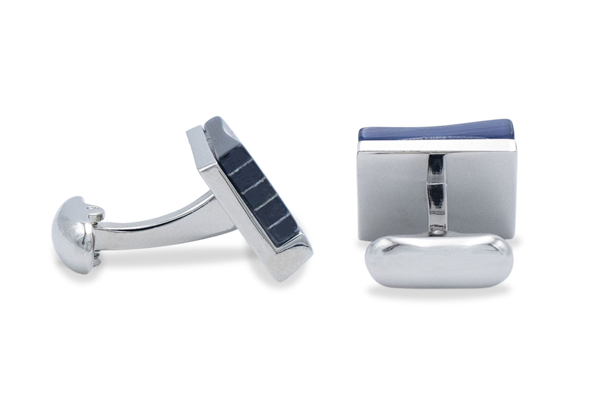 Navy tone cufflink with horizontal accents on it. This cufflink is a must have for every fashion trend-setter