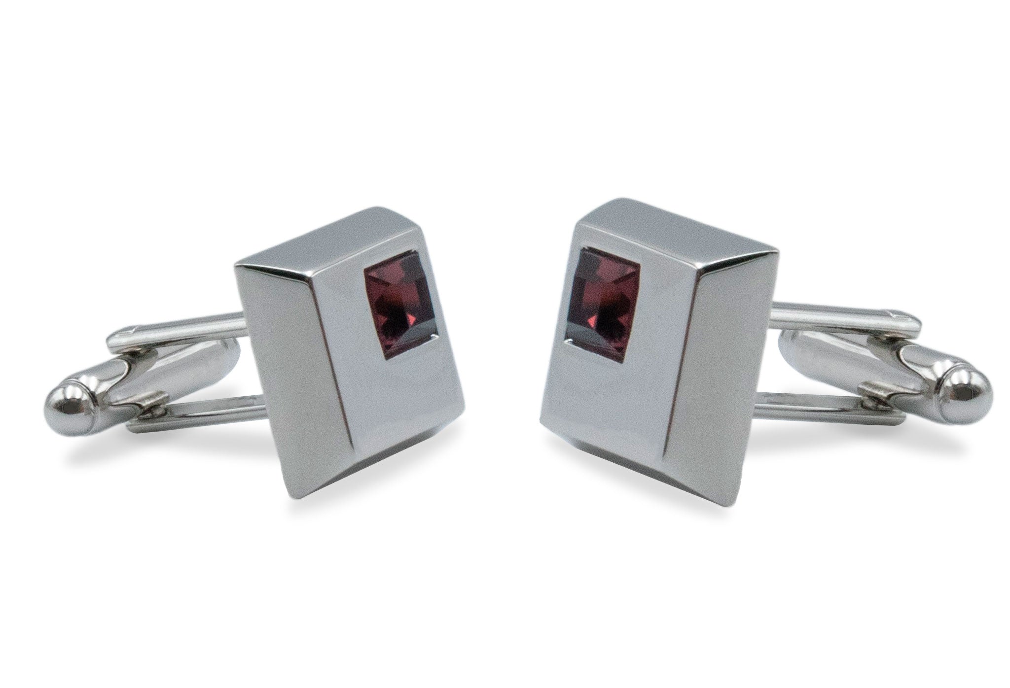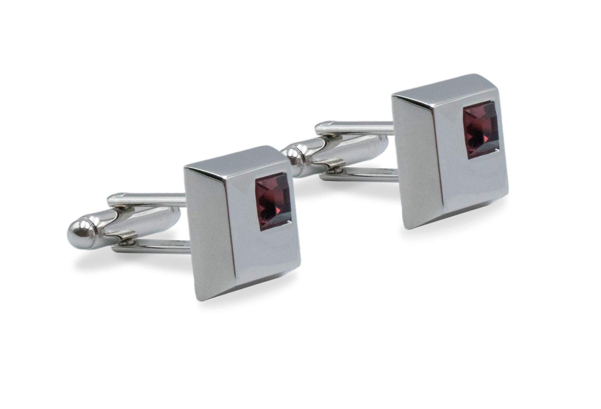 A squarish cufflink with a magenta diamonte will only elevate your french cuff shirt.