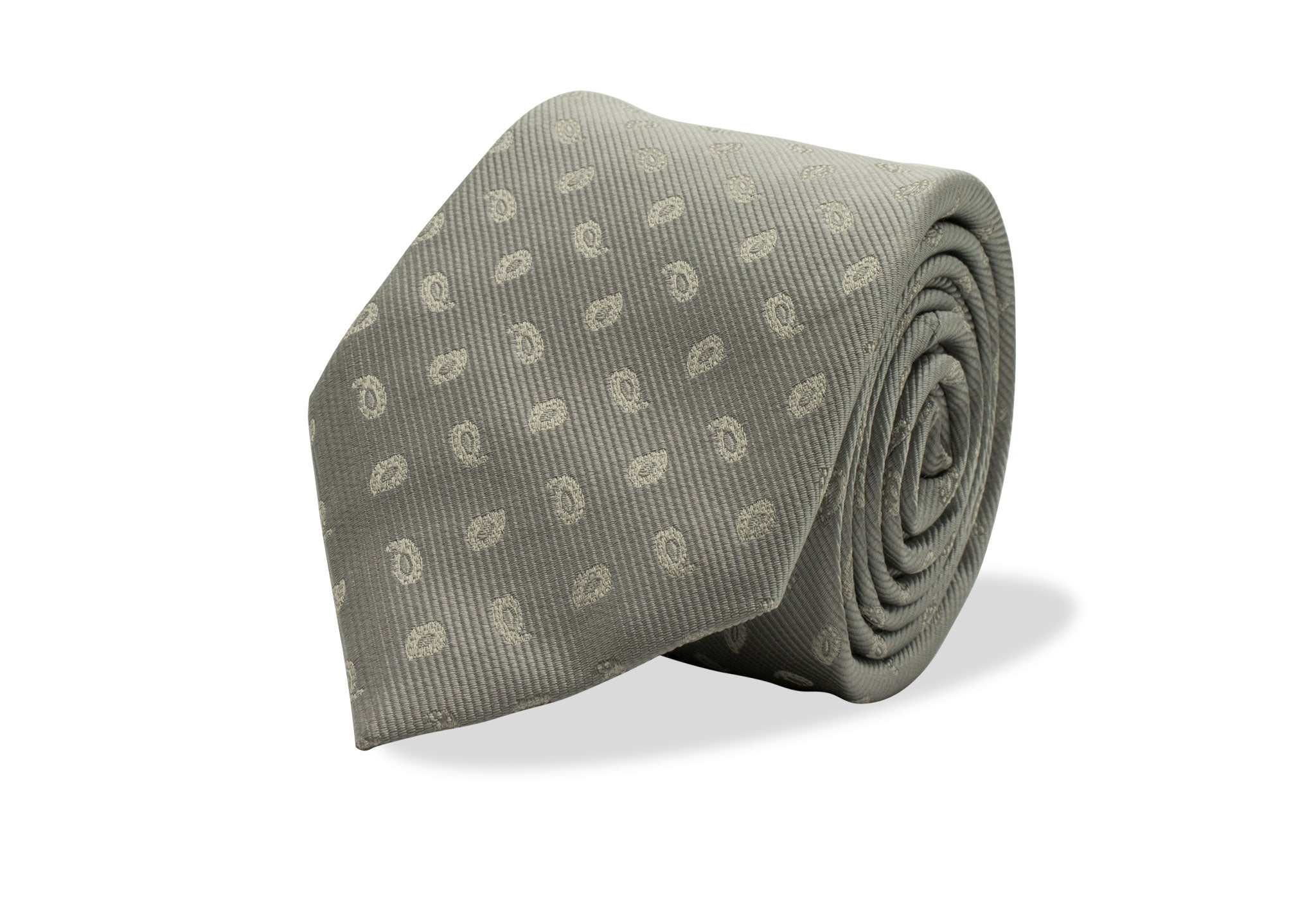 The San Fernando a deep grey tie with paisley brocade is always great for that special dinner event.
