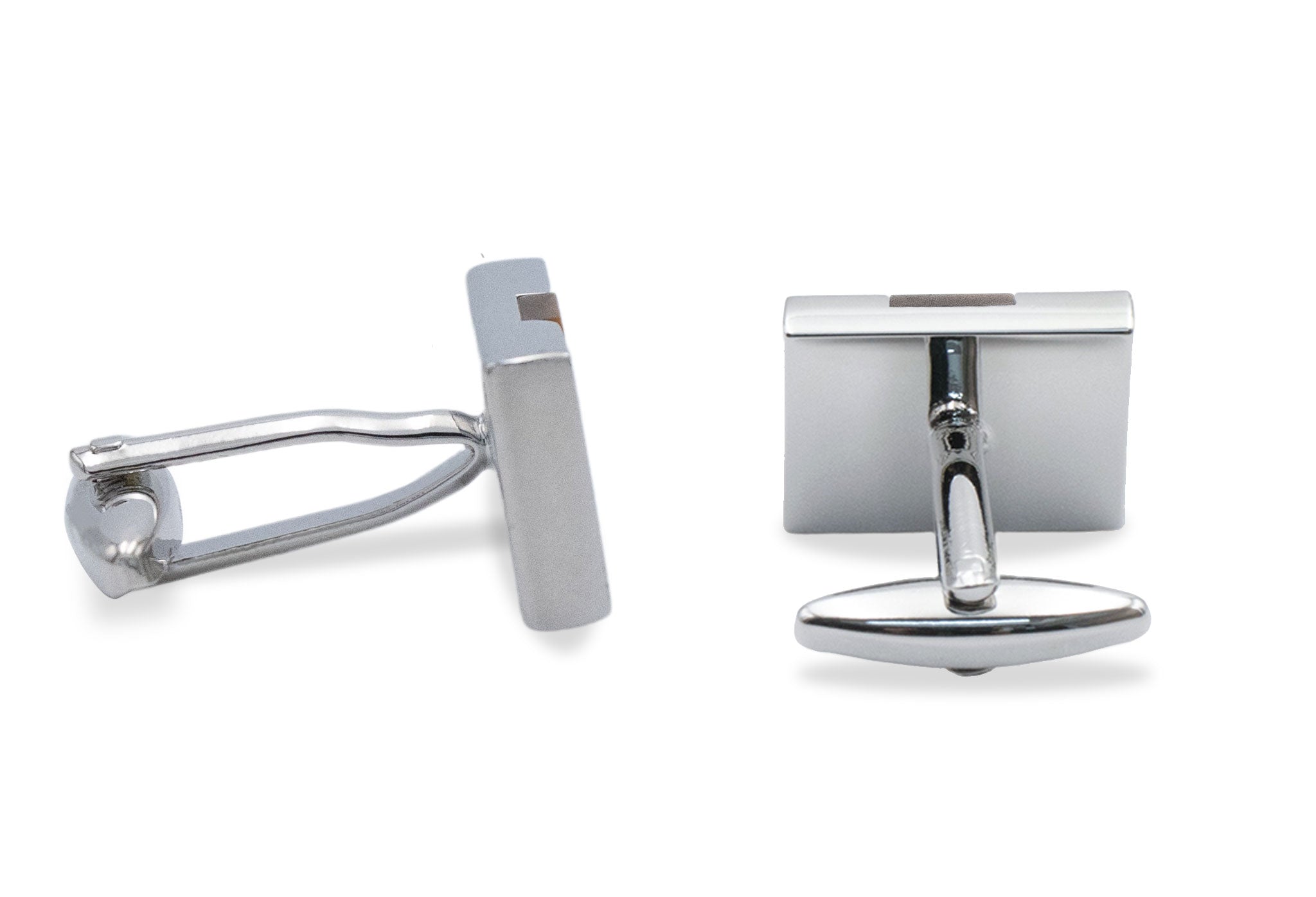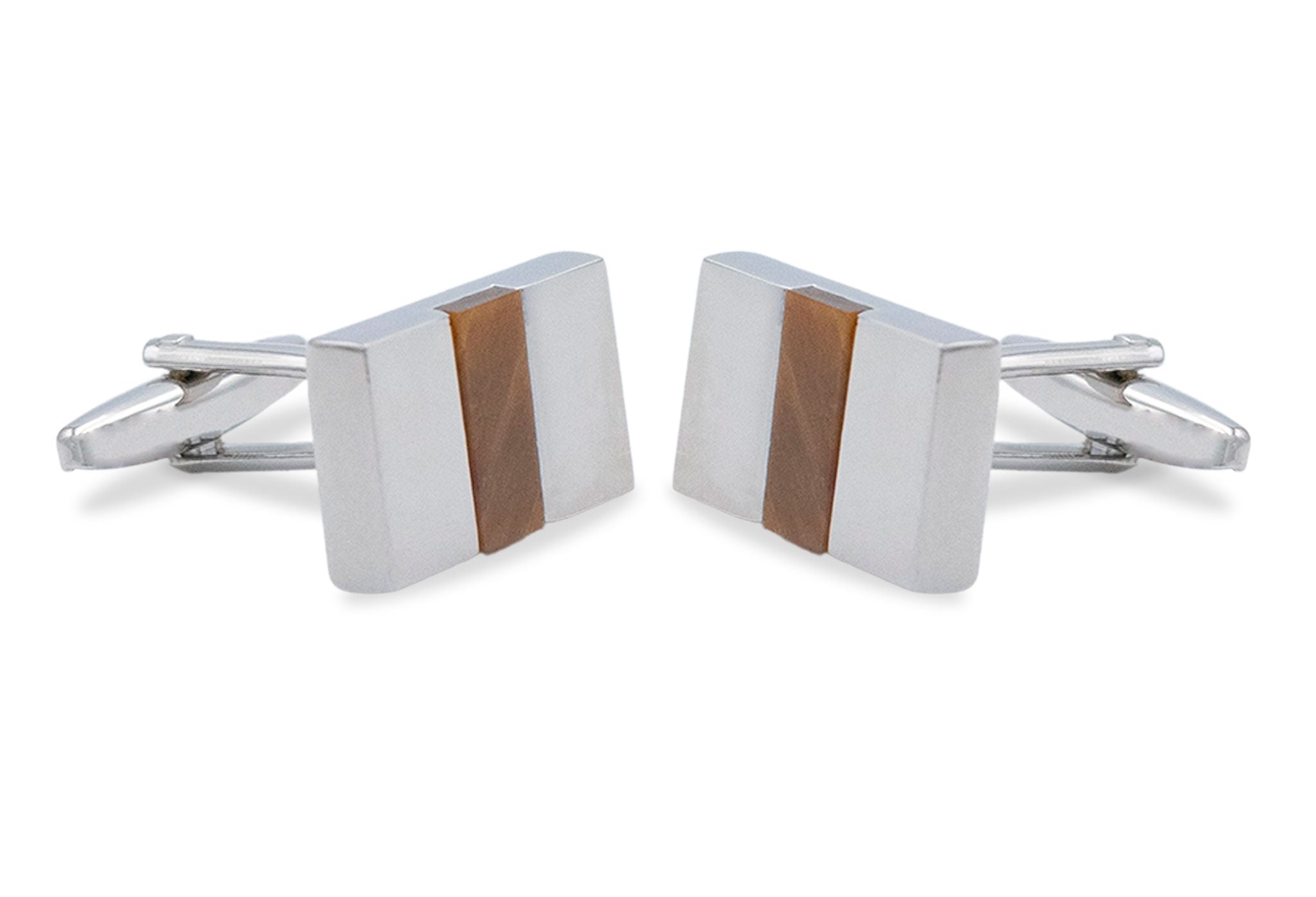 Add a touch of artful refinement to your evening attire with cufflinks in alternating chrome-wood tone inlays.