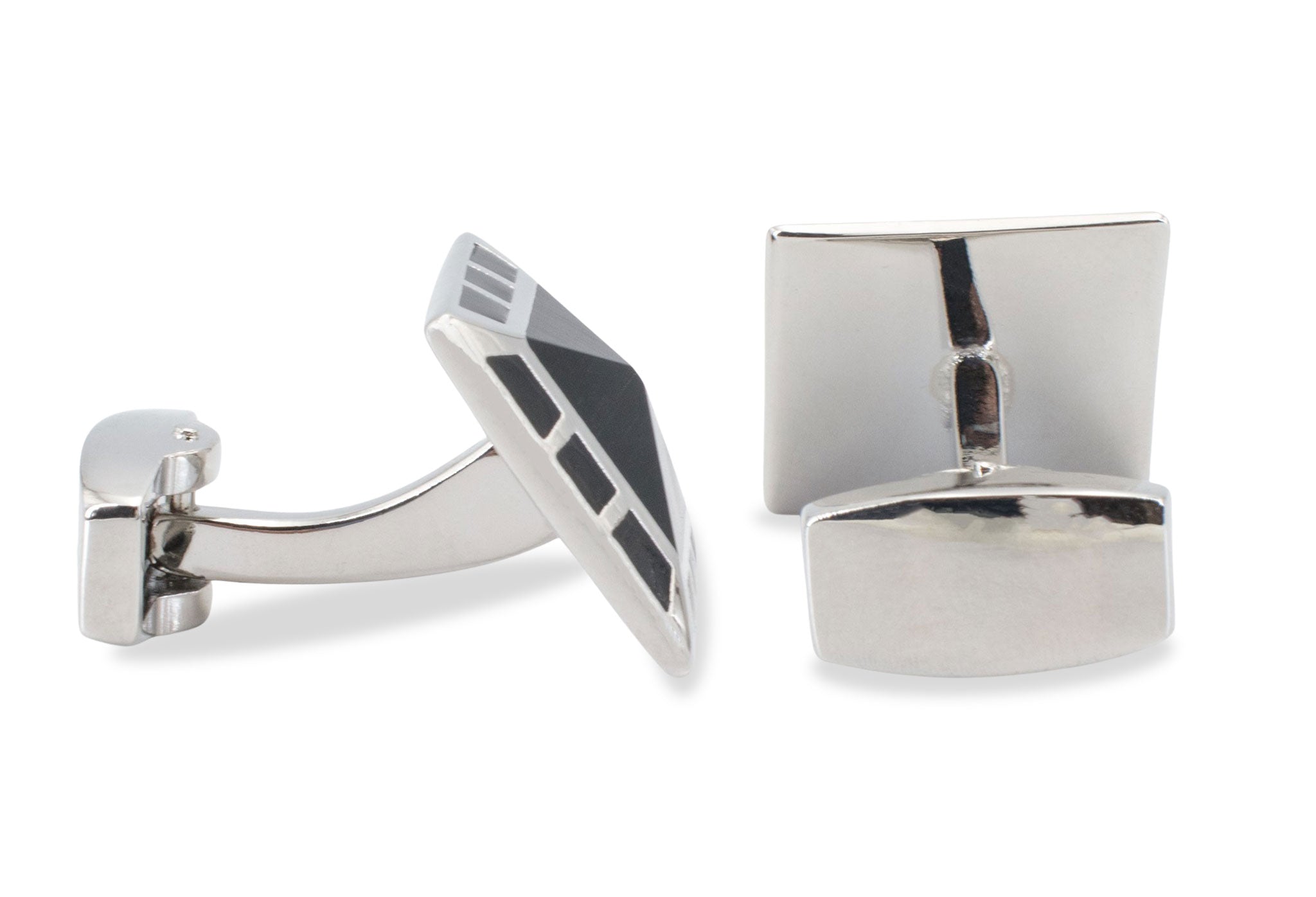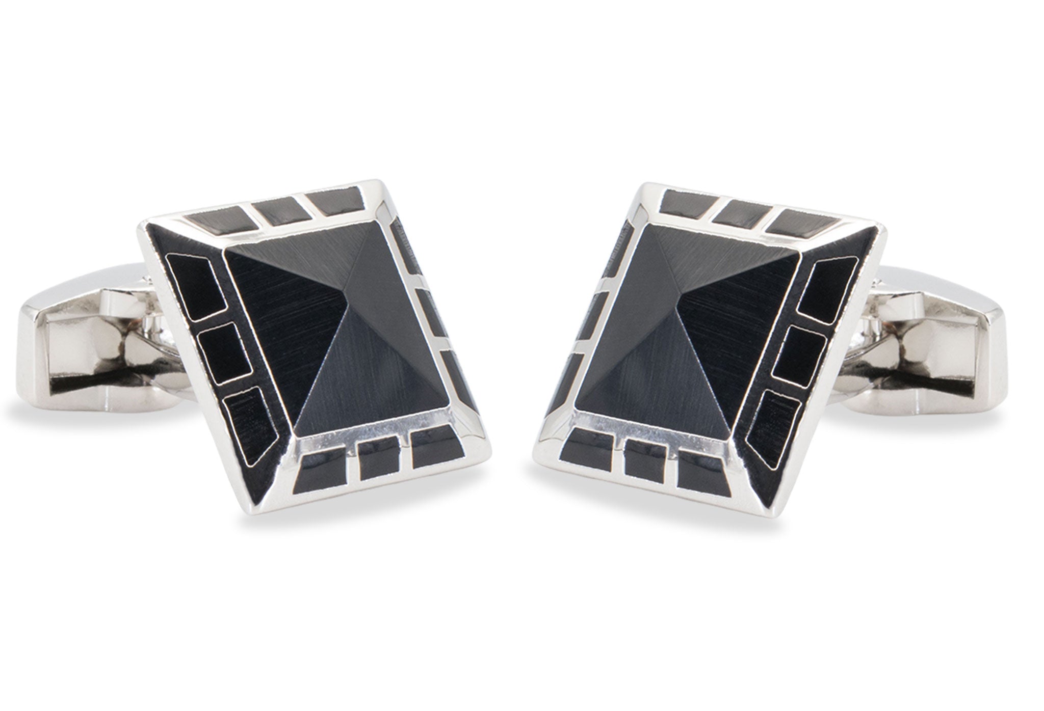 A square cufflink with rectangular boxes. Perfect for an evening event, preferably with a plain toned shirt.