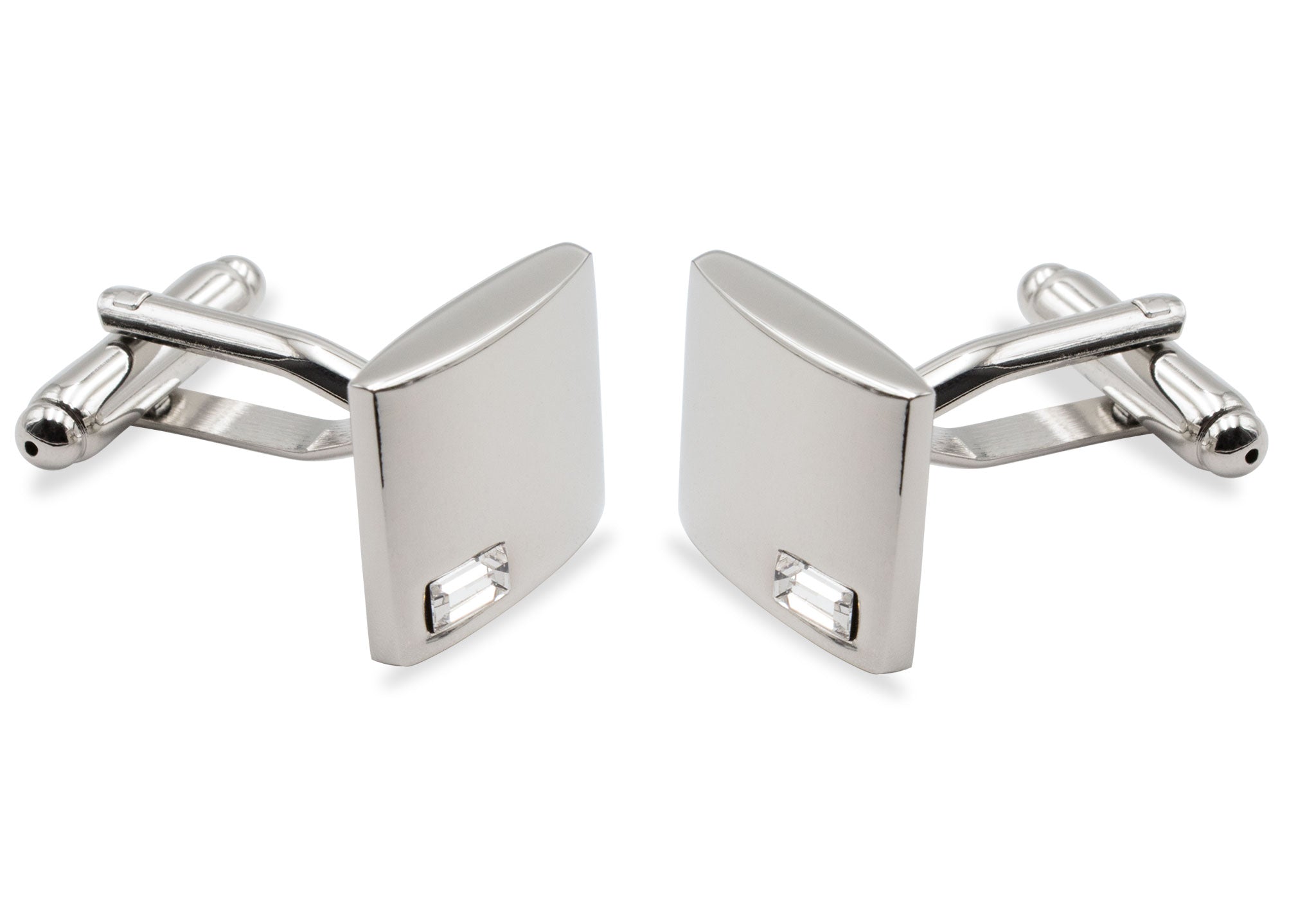A refined gentleman will always know when to wear diamonte cufflink. A rectangular shaped cufflink with a single diamonte on the edge.