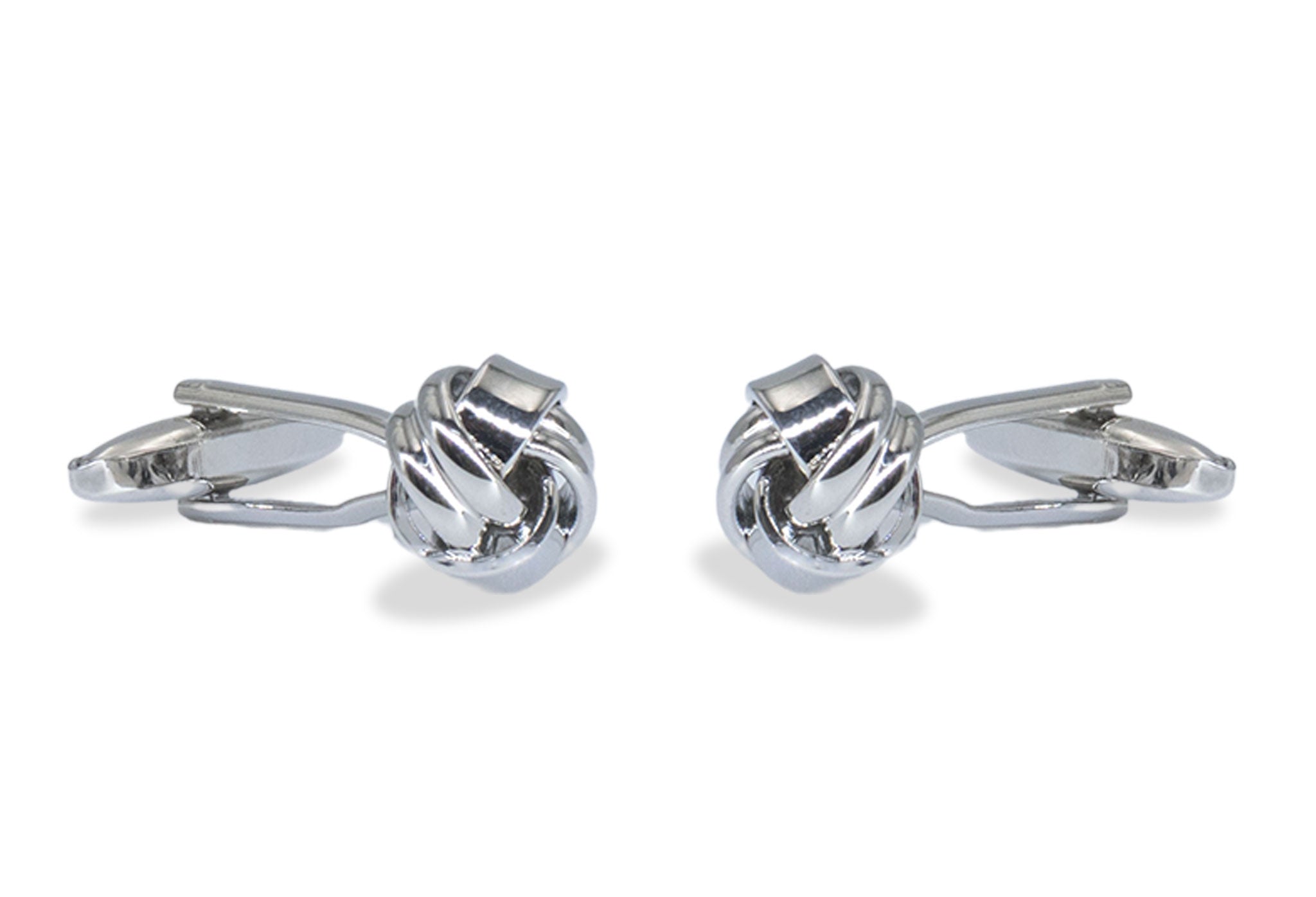 Chrome toned knot cufflinks with a double design going through out the knot. Perfect to wear for wedding events.