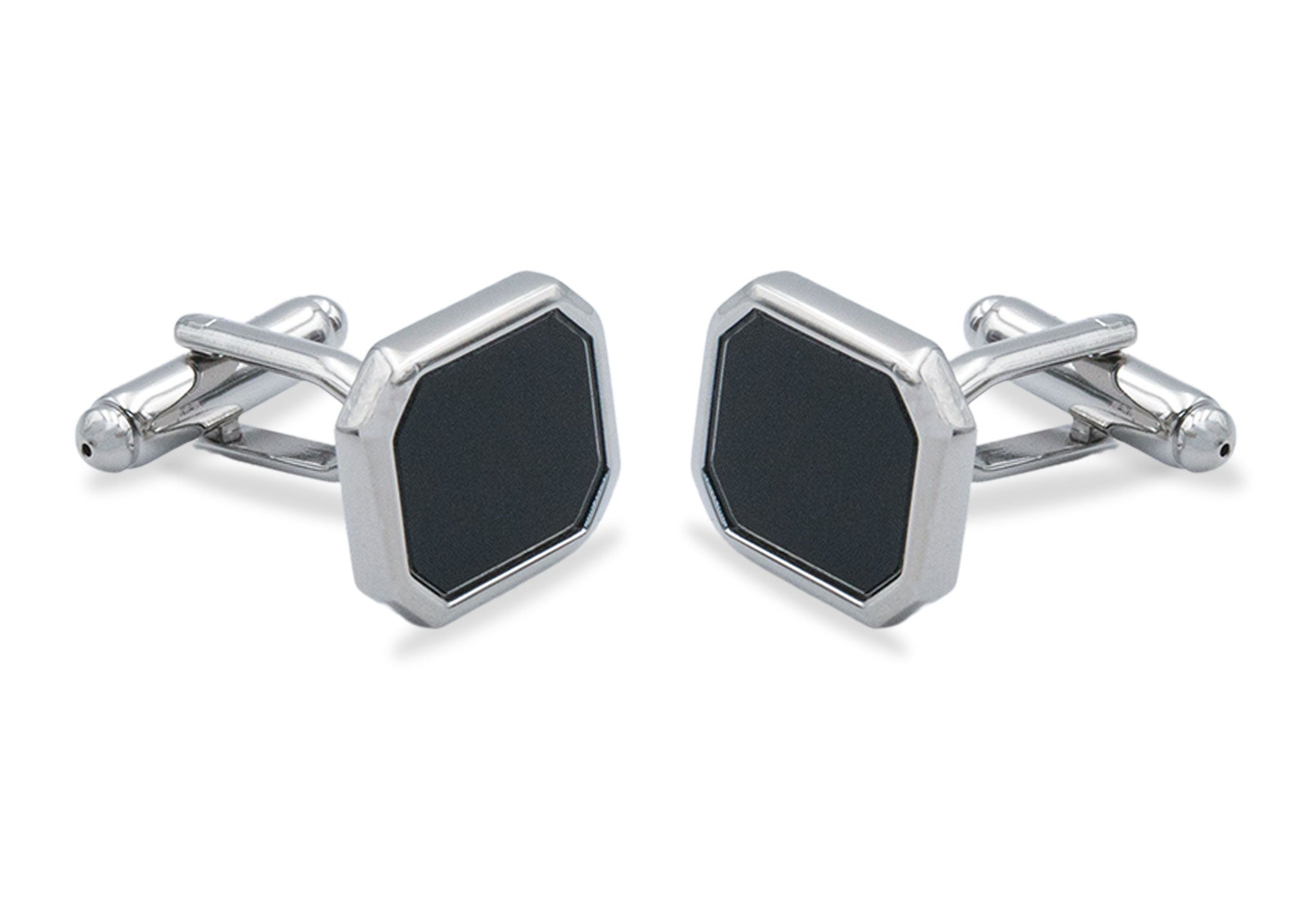 Black pearl-tone centre piece on this rectangle shaped cufflink will pair well with any coloured french cuff shirt.