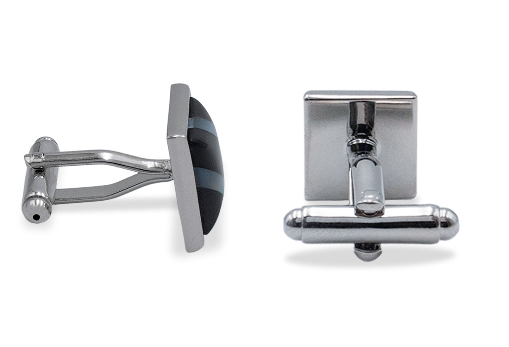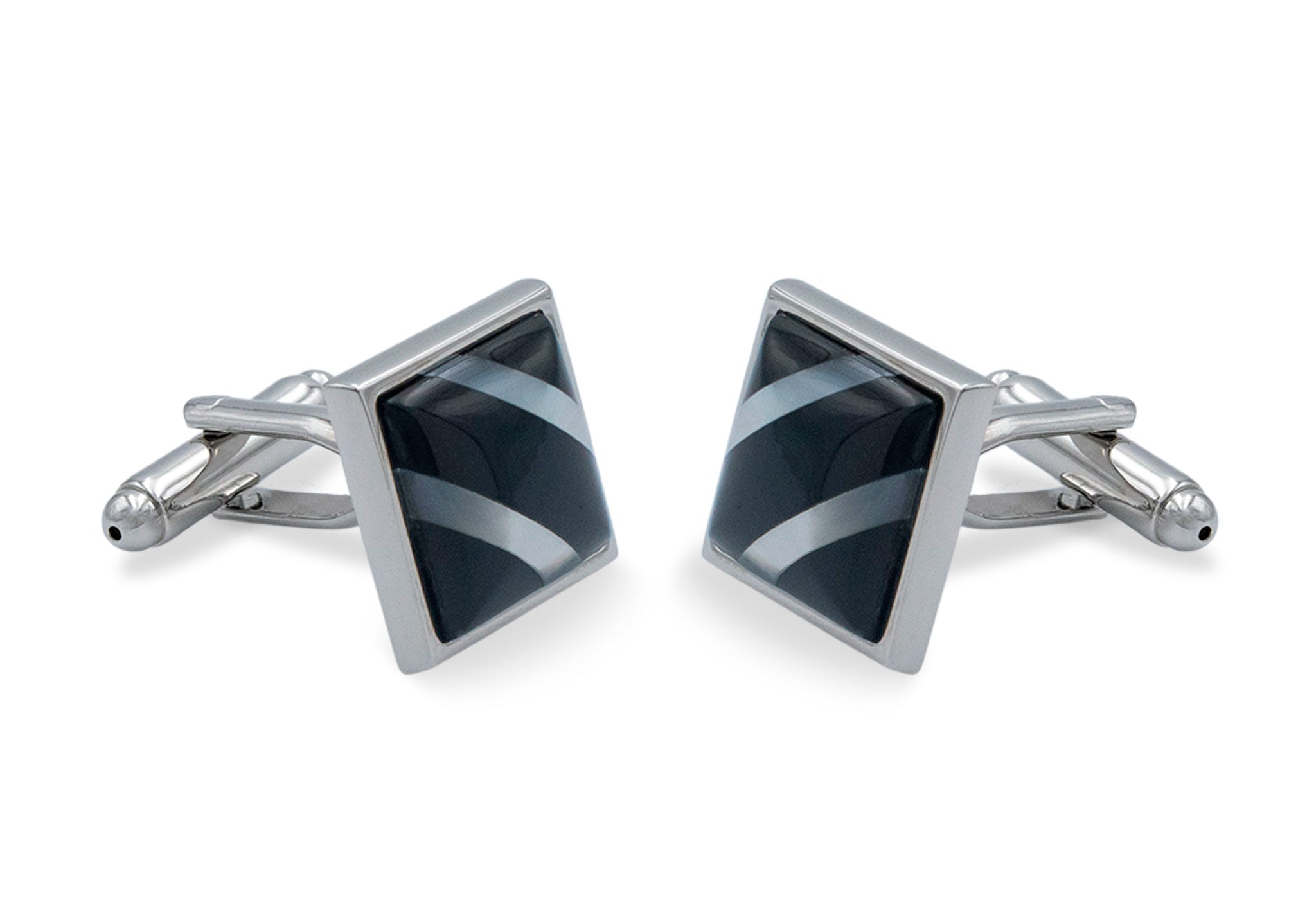 Featuring a chrome square frame inlaid with black and faux mother-of-pearl toned diagonal, they've got a beautiful modern design that'll complete any look.
